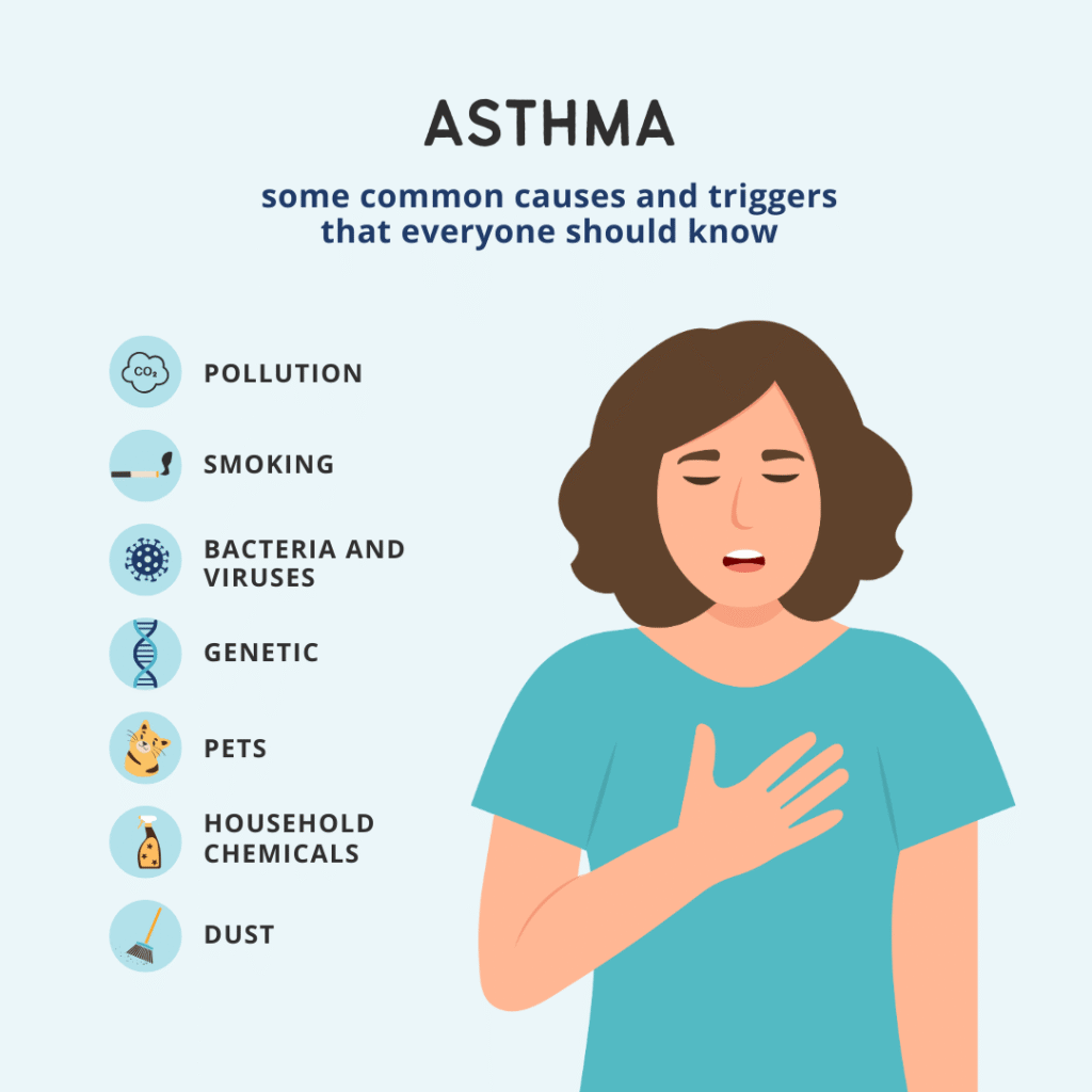 Asthma is a long-term respiratory condition where your airways become inflamed and narrow, making it difficult to breathe. Common symptoms include: